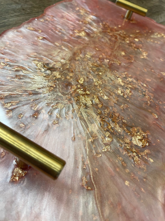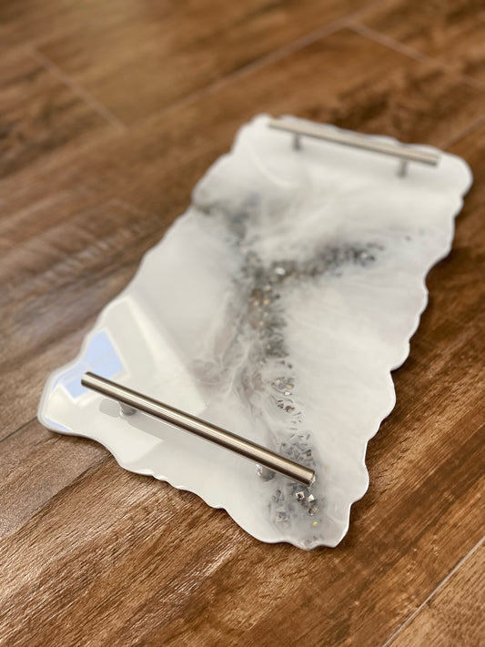 White Gray Large Rectangle Vanity Tray Silver Bar Handles